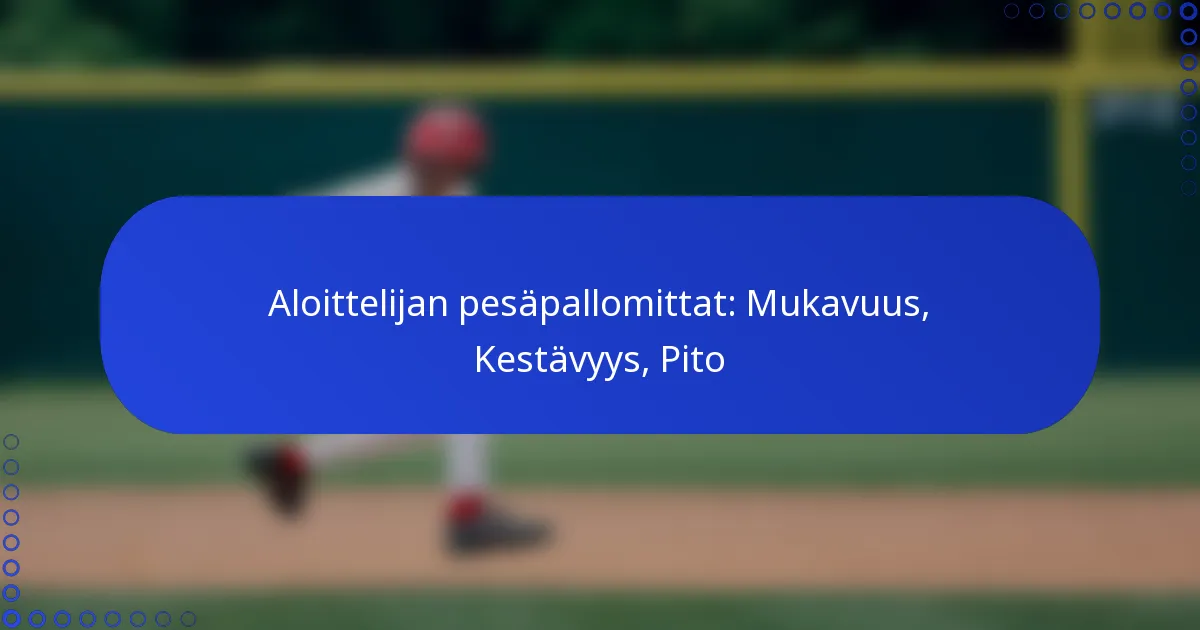 Oikean aloittelijan pesäpallomitran valitseminen edellyttää koon, istuvuuden, materiaalin ja budjetin huomioon ottamista. Hyvin istuva mitta parantaa mukavuutta ja pitoa, kun taas oikea materiaali vaikuttaa kestävyyteen ja suorituskykyyn.